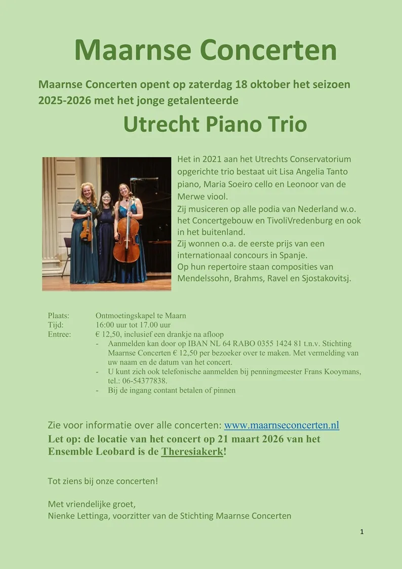 Maarnse Concerten – 18 oktober in de Ontmoetingskapel